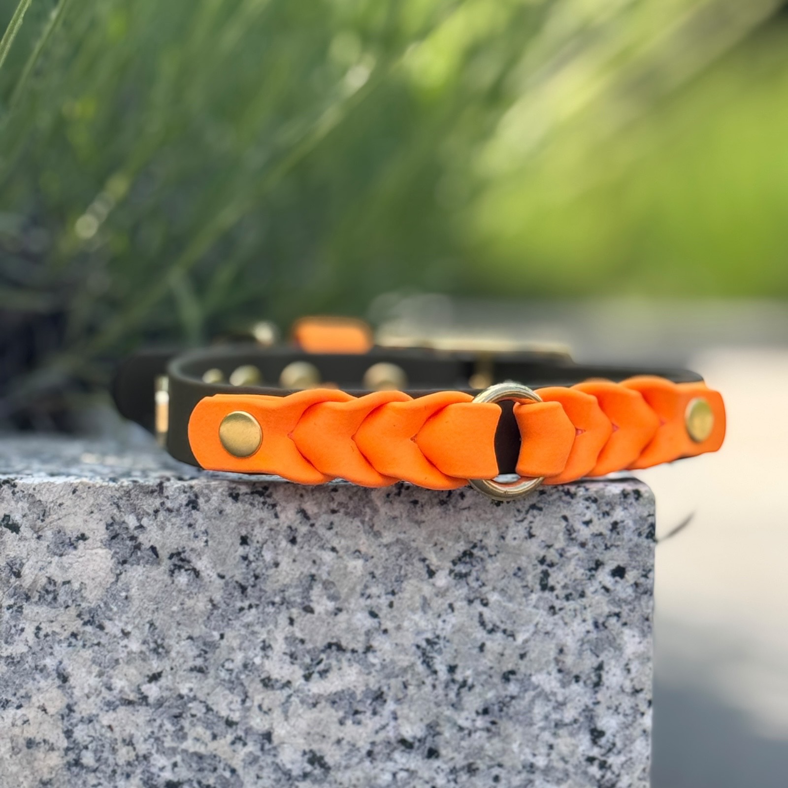 Ozdobne plecenie — ręcznie wykonywany element, który podnosi estetykę obroży i wyróżnia ją na tle klasycznych modeli.